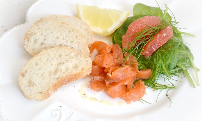 K marinování domácímu lososa mě inspirovala plzeňská restaurace Saloon Roudná, z jejíž návštěva mne sice nepotěšila, ale alespoň jsem se pustila do průzkumů, jak na Gravlaxe – skandinávskou specialitu, na kterou si musíte po přípravě sice chvíli počkat, ale vyplatí se to. Můžete tak připravit celý filet, ale ten může mít i několik kilo, a přestože díky puštěné vodě maso nějakou váhu během marinování ztratí, pořád potřebujete tolik členů rodiny jako Veronika Žilková, abyste pak všechno zpracovali. Budete-li si vybírat tedy jen půlkilový kus, záleží, co máte raději. Zda ocasní část, kde je znatelně méně tuku, tedy těch bílých čárek,a proto se doporučuje i na sushi a současně je tu nutno být opatrní se solí, protože nízká část lososa se promarinuje snáz a také za kratší dobu, ocásku stačí 24 hodin. Takže ten je pro nedočkavé. Plátky jsou z něho ale nevysoké, asi tak 1 cm. Kdo rád autentickou chuť lososa a chce se do něj taky pořádně zakousnout, volí vysoký úsek filetu a počká si dva dny. Marinuje se s kůží, která filet drží při sobě, ale před krájením se odstraní. V polovině doby marinování bychom lososa měli otočit kůží nahoru a zas vrátit do lednice.