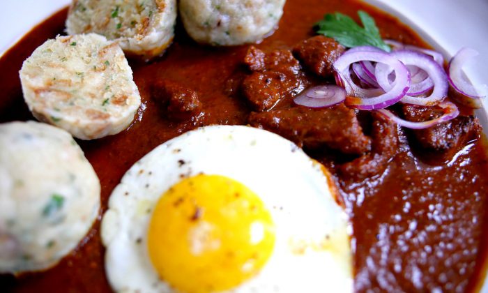 Po vzoru z restaurace jsem na guláš přidala sázené vejce. Prostě volské oko. Nejdůležitější je ho dělat zlehka a pomalu, na troše másla, které nechcete přepálit. Vajíčko se tak připravuje cca 5 minut. Pak ho osolte a opepřete. Pokud nemáte minipánvičku a toužíte po pravidelně kulatém výsledku, pomoci může lívanečník. Když není ten, tak velké kovové tvořítko na pyré, kterým kolečko vykrojíte. No a když ani to doma není, prostě proveďte obřízku :-D
