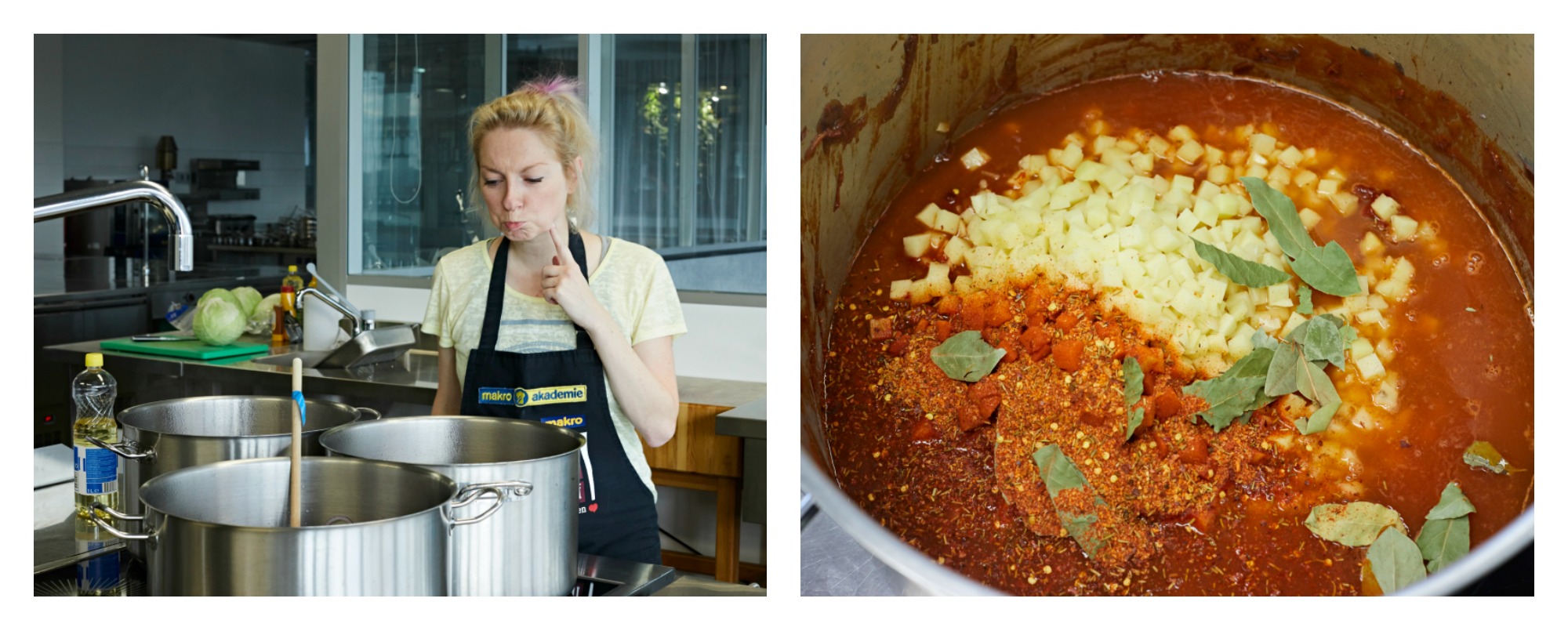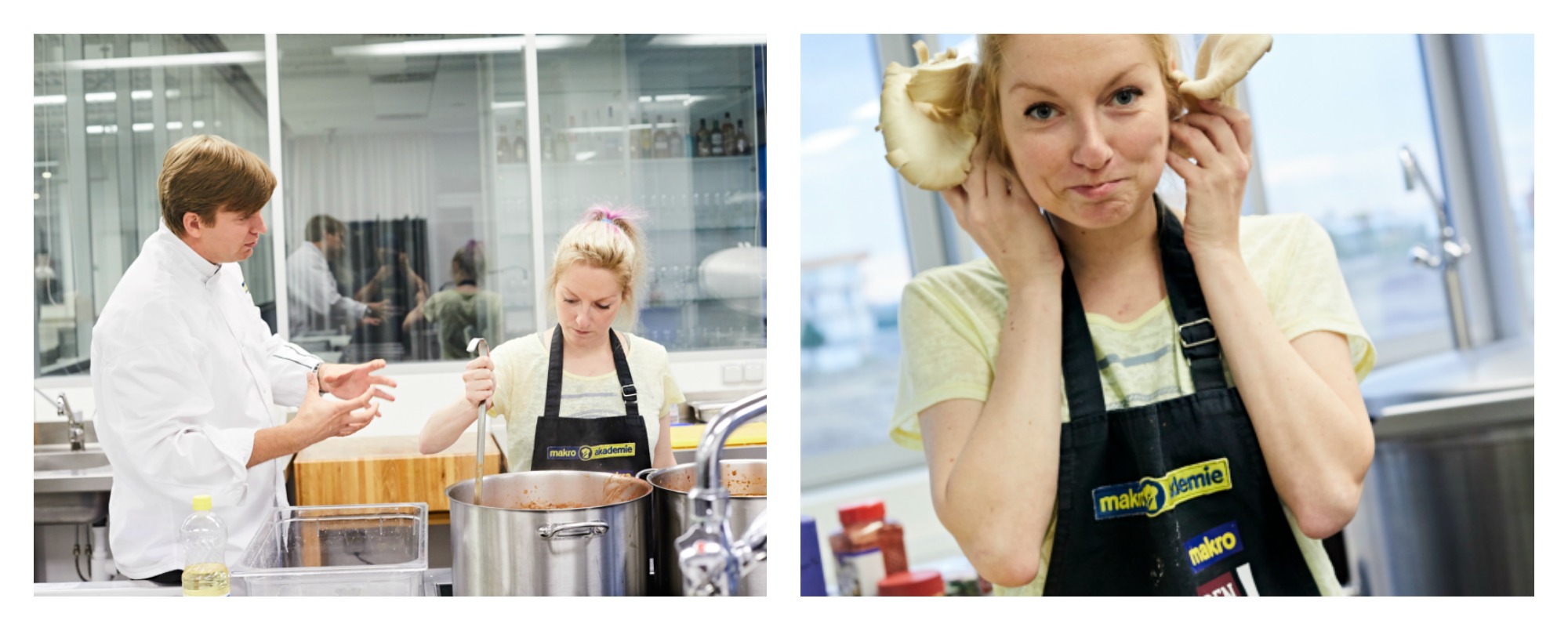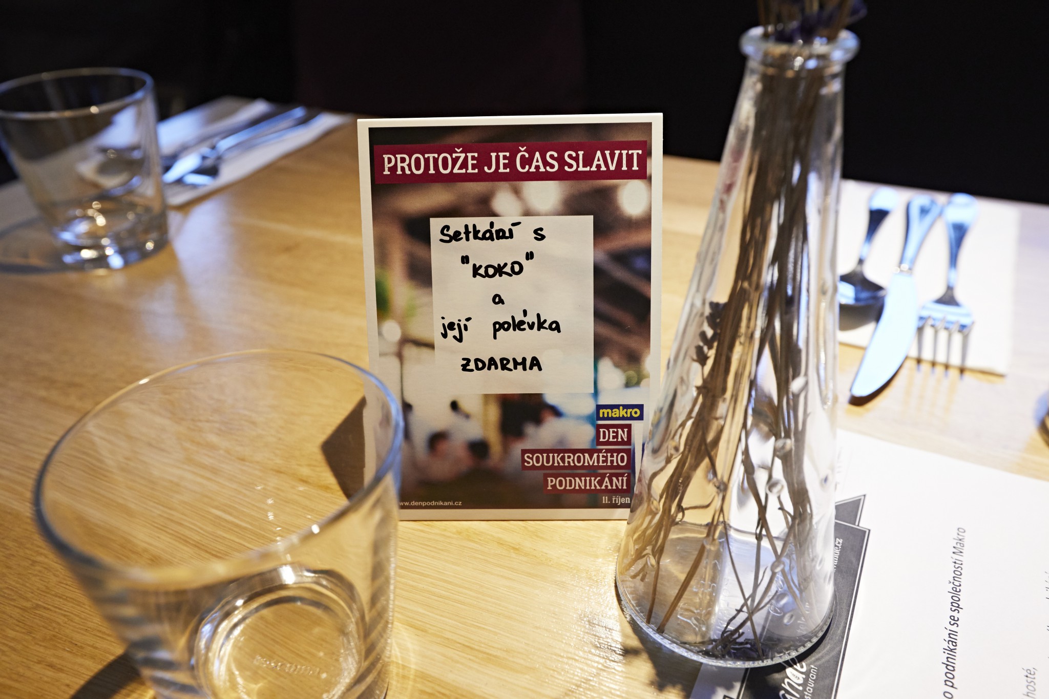 Od 14:00 se schází několik blogerů a vařmenů včetně mě nebo Martina Škody před Makrem na Stodůlkách. Spojila nás spolupráce na úterním Dni soukromého podnikání. Stačilo svůj podnik zaregistrovat a vymyslet nějakou speciální nabídku. Tím jste se stali součástí kampaně. A my vařiči jsme si vybrali své oblíbené provozovny, kterým jsme se rozhodli lehce helfnout s návštěvností. Takže jsme vymysleli jeden pokrm a řekli počet porcí ( Martin dělal 150 ks sandwichů, já zas 30 litrů polévky, další dámy pekly dorty…), Makro nás nechalo si na to nakoupit vše potřebné zdarma a propůjčilo prostory Makro Akademie – obří profi kuchyně, která je součástí stodůlkovního komplexu prodejny. My věnujeme čas (půlden příprav a následně svou účast na místě v den konání).