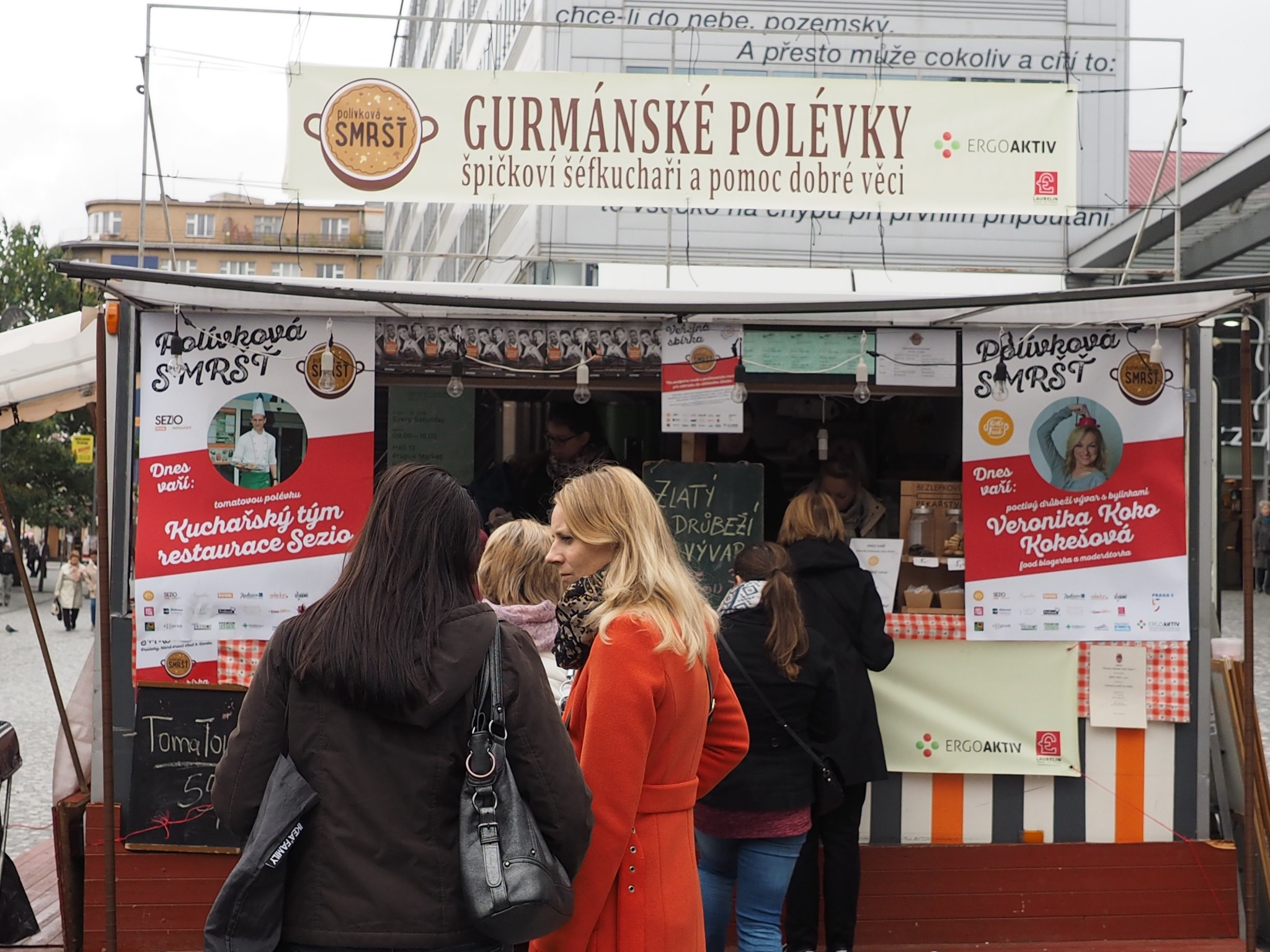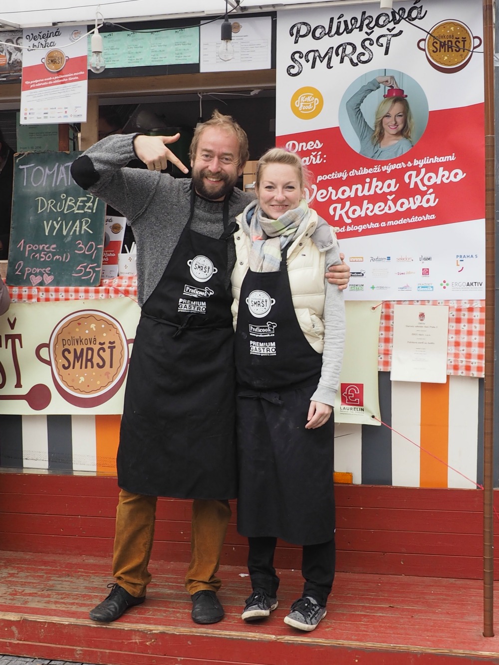 Přemístila jsem se k řešení další polívkařské akce, tentokrát Polívkové smršti. Věnovala jsem 100 litrů drůbežího vývaru na dobrou věc a v kiosku na Andělu ve čtvrtek během oběda vydávala horké vývary do kelímku s bylinkami. Je fakt, že tu byla trochu jinačí cílovka než na Náplavce, takže jsem jako za starých časů (myšleno v únoru) musela každému vysvětlit, proč v tý polívce nejsou žádný nudle… Další ufff.