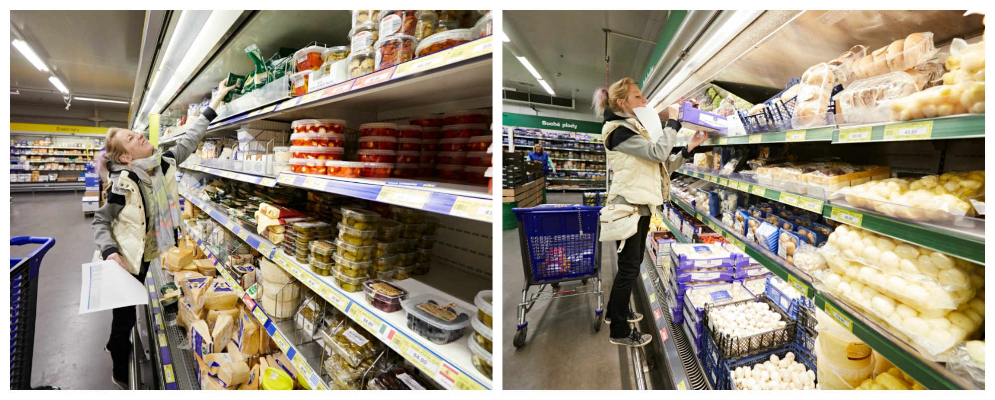Nejdřív nákupy. Člověk vládnoucí 162 centimetry se tu někdy cítí jako hobitek. Ale tyče pod regály nefungují dobře jen jako odrazníky nákupních košíků, ale i jako pomocný schůdek. Jen bacha na mokré podrážky.