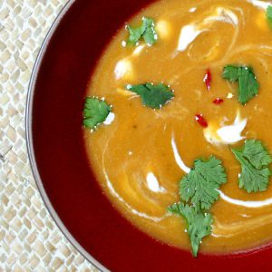 Servírujte ještě s kápancem kokosového mléka, což udělá pěkný efekt… koriandrem a vedle chilli na přidání.
