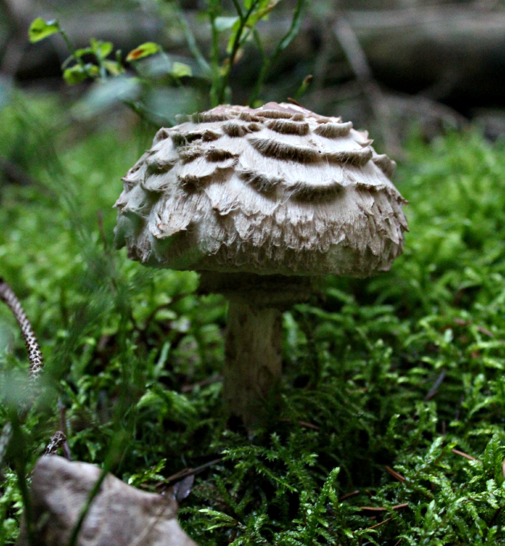 Klobouk má v průměru 10 – 15 cm, zpočátku je téměř kulovitý, později sklenutý až plochý s hrbolem uprostřed, hustě pokrytý velkými odstátými šupinami.