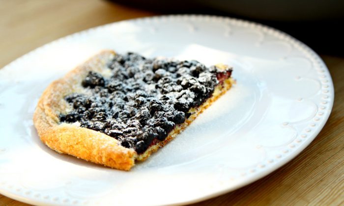 Pořádně posypejte pracovní plochu další moukou a z mísy na ni vyškrabejte těsto. Posypejte ho i shora. A teď velmi jemně propracujte, nechce to zabořovat prsty příliš hluboko, prostě jen něžně. Z bochánku opatrně poplácáváním vytvořte placku a položte doprostřed pekáče. Od středu směrem ke stranám se ho snažte hrnout do všech směrů. Začne-li se lepit k rukám, opět ho posypejte. Celkem vám na tuhle srandu určitě bude stačit kolem 30 g polohrubé mouky. Kraje o šířce cca půl centimetru lehce pozdvihněte prsty jako na videu. Ty mají být vysoké max. 1 cm. Plocha, kam budete sypat borůvky, tak 5–7 mm. Teď už stačí jen rovnoměrně rozmístit borůvky. Máte-li pěkně pevné, čerstvé, šťavnaté, postačí 300 ml. 350 radím u těch, které jsou už napůl rozmačkané, téměř přezrálé a vysáté vedrem. A na ně trochu moučkového cukru.