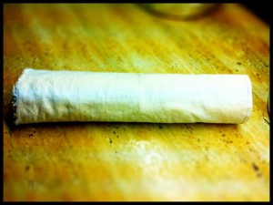 Na válu nebo přímo na desce kuchyňské linky začněte z koule tvarovat spíš válec, rukama válejte, rozšiřujte a ztenčujte tvar.