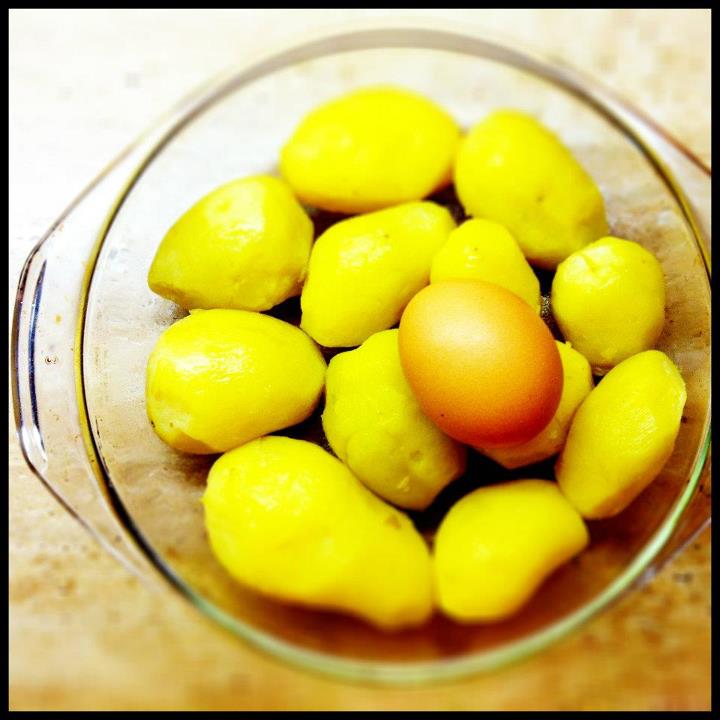 Po uvaření ( všechny podobně velké, středně veliké, vaříme asi 20 minut) je nechte vychladnout a oloupejte.