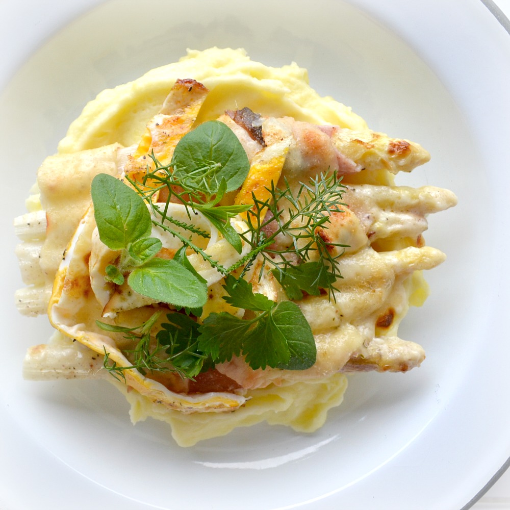 Přišla jsem na to, že lepší než halda jedné bylinky na jídle je halda utvořená z mnoha druhů. Fantazii se meze nekladou. Jako inspirace vám můžou posloužit dvě následující fotky. Jednou směs bylinek navrchu zapečeného chřestu, jindy bylinková omáčka k telecímu válečku. Často se mě v mailech ptáte na zdroje surovin… na zmíněném tržišti jsem pořídila vlastně většinu z těchto surovin. Jak český chřest ( např. stánek PastaArt), tak telecí váleček od Rudolce a vajíčka já odkud jinud než od farmy s vtipnou webovou adresou www.kokoland.cz :-D
