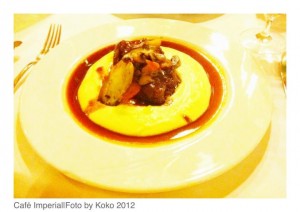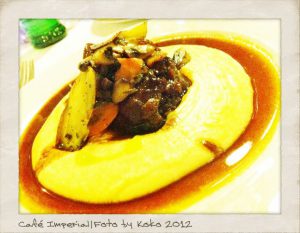 Maso se rozpadalo, prodchnuté silnou chutí redukované omáčky, červené víno v ní ustupovalo až na druhou kolej, na prvním místě vítězila chuť hovězího.