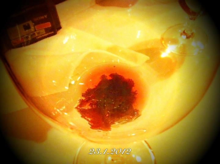 Obsluha mi na tenhle úkaz velikosti mexického dolaru na dně skleničky velmi poklidným hlasem bez udivení odvětila, že jde o klasickou vinnou sedlinu.