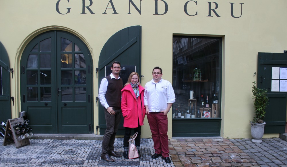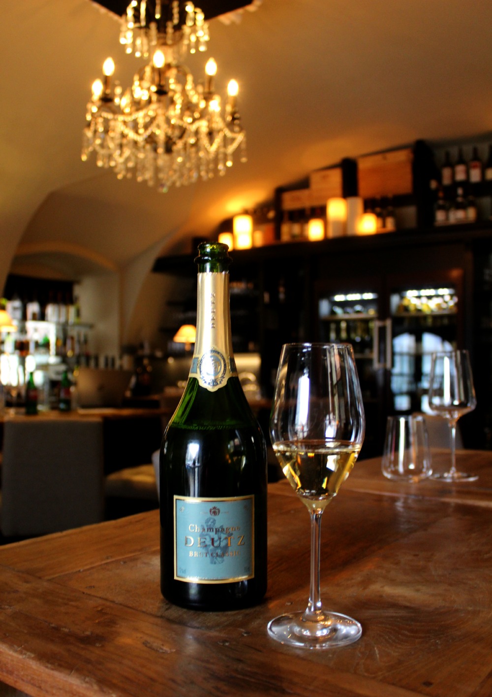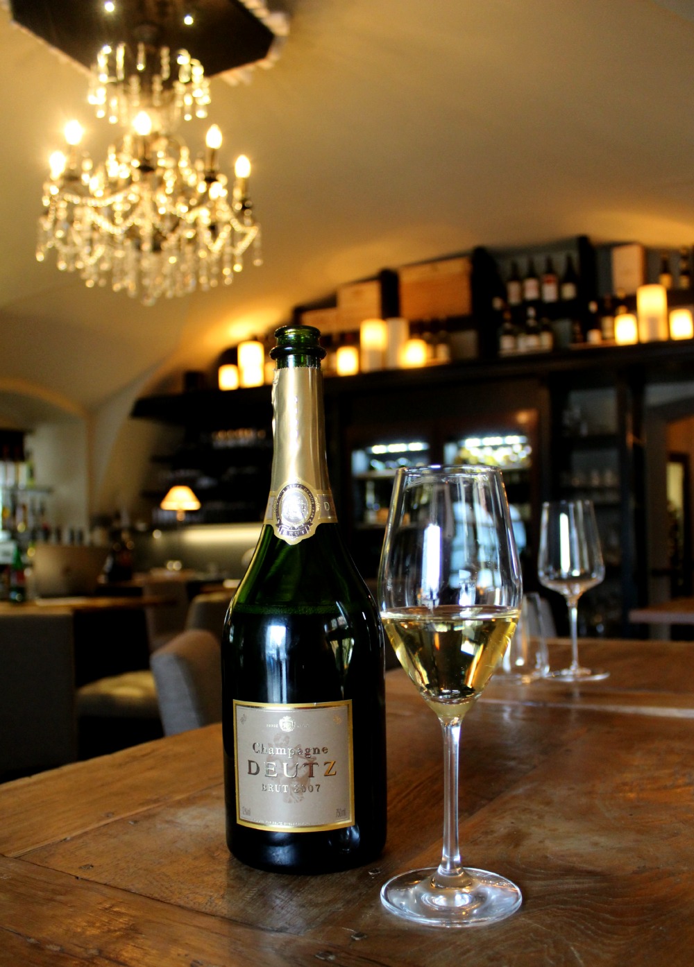 A zpět k Deutz. Hlavně pro vás, co se dali třeba dohromady v roce 2007, by mohla být lahev víc než výjimečná – ať už na Valentýna nebo k výročí. Tohle je totiž moje první ročníkové šampaňské v životě. Sice si moc nevzpomínám na něco význačného ze svého života v roce 2007, ale hlavně to byl dobrý ročník. Champagne Brut Millesime 2007 za 1385 Kč. Já cítila smetanový dortík. Jakub ořechy, smetanu a vanilku. Takže shoda, svým způsobem :) Učím se! On by si dal svatojakubky s houbovou omáčkou. Já už ale vážně cokoli! Nemůžu ale tvrdit, že by mě tam nechali celou dobu úplně o hladu. Degustace totiž probíhala v baru Grand Cru. K němu ale přiléhá stejnojmenná restaurace, kde jsem byla nedávno, gastrozážitek tady. A tam šéfkuchařuje Honza Punčochář. Jeho je to rameno na horní fotce. A k němu se také chystám na šéfkukačku. Na jeden dva dny se stanu loupačem brambor a kráječem cibule v jedné z nejluxusnějších kuchyní v ČR, abych viděla, jak to tam chodí (a následně vám to tu taky do detailu popsala). Doufám, že se těšíte. Stejně tak jako na budoucí vinnou spolupráci s Jakubem, tohle byl jen takový malý úvodeček :) A vám, co budete v sobotu slavit, přeju krásného Valentýna.
