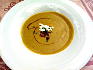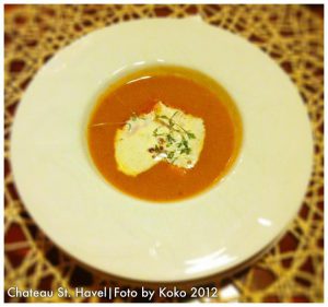 Jídlo mi v St. Havlovi vždycky chutná, baví mě i foodstyling, místní prostory jsou skvostné. Vnitřek restaurace má obří okna v létě otevřená směrem na terasu a hned za ní je až neuvěřitelně zelený trávník místního golfového hřiště. Člověk tu zapomene, že je pár metrů od Jižní spojky a pár kilometrů od Barrandovského mostu. Vzrostlé stromy dávají pocit, že jste někde úúplně jinde. A to je na tom to skvělé. Venkovská, ale honosná atmosféra uprostřed Prahy. Bohužel, už jsem jeden zážitek psala i níž a musím říct, že ani po tom půl roce se nic nezměnilo – na obsluhu si tu musíte vybudovat zvláštní trpělivost. Jsou milí, ale pomalí. Čekat než si mě někdo všimne, že sedím jako nový host na terase,to jsem vzala po 12 minutách. Nikdo zkrátka neprošel. Pak jsem šla na toaletu, vyhlídla servírku a ptala se, zda si mohu sednout venku. Řekla, že ano…a 5 minut jsem opět čekala, než někdo přišel s jídelníčkem a zeptal se, co chci k pití. Za 5 minut pivo. Alespoň v kuchyni zvládají vše rychle, což číšníka zřejmě donutilo velmi rychle následně donést také polévku… Obsluha v Havlovi se prostě nepředře a nemá kam chvátat.