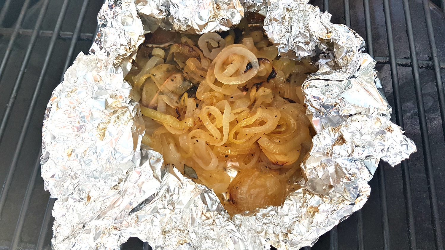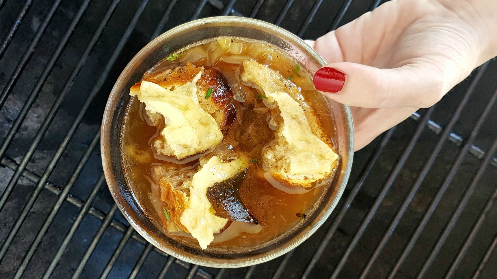 Gril považuju za tu nejlepší letní kuchyň. Jsem schopná na něm připravovat prakticky cokoli – nebo si alespoň mocně vypomáhat a doma jen pokrm dodělat. Pokud je plynový, je rozpálený za 5 minut a se spoustou příslušenství jako wok pánev nebo pizza kámen nahradí široký arsenál nádobí. Na tuhle cibulačku ale nejsou třeba žádné vychytávky kromě alobalu. Stačí žít v představě, že tři čtvrtě hodinky budete mít na roštu dostatek místa na balíček s cibulí, a mít gril s příklopným víkem.
