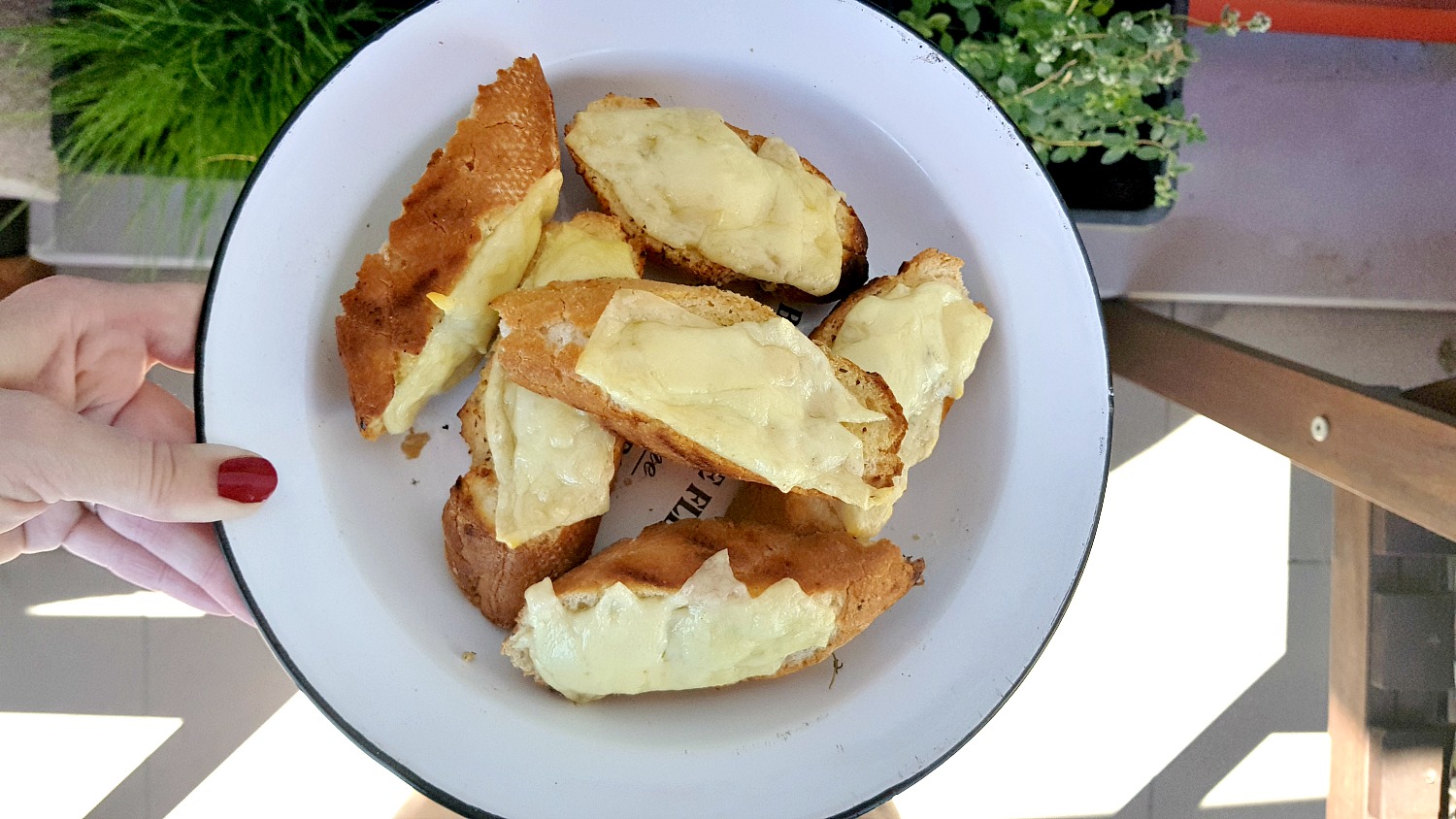 - bageta k dopečení (ideálně s česnekovým nebo bylinkovým máslem)