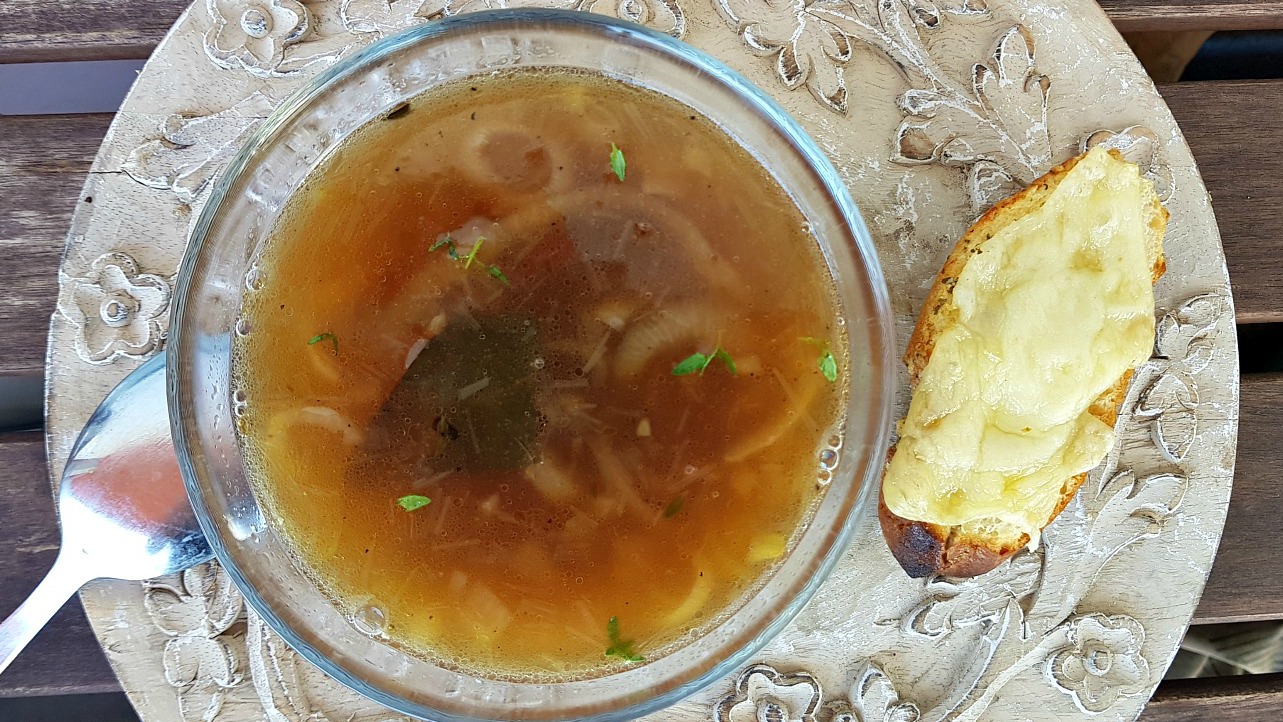 A prozradím ještě jednu věc – když už tohle děláte, připravte polévky minimálně dvakrát tolik. Protože je tak dobrá, že si ji s radostí v budoucích třech dnech ještě každý v domácnosti dá ještě jednou. Bagetky můžete během chvilky připravit čerstvé a rozpéct je pod grilem v troubě. Obecně můžete prostudovat i klasický recept, kde připravuju francouzskou cibulačku.