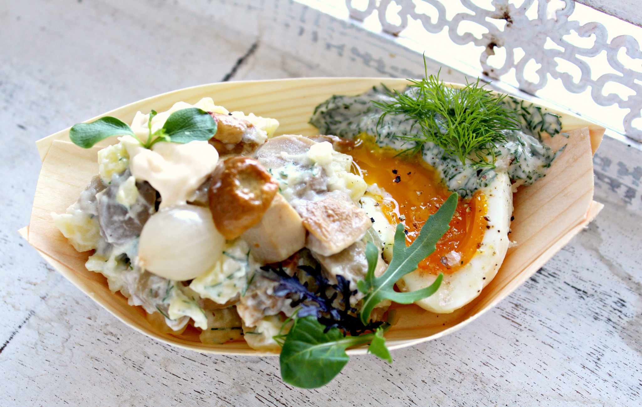 Když jsem měla před vystoupením na plzeňském Fresh Festivalu, muselo se počítat se vším – s horkem i zimou. Při volbě toho, co při vystoupeních připravím, jsem zvolila upgradovanou tradiční českou polévku a pak salát, který se bude vyjímat během léta na vašich grilovačkách. Co se polévky týče, šlo o kulajdu… Ano, to je přesně to, co vidíte na fotce. Je totiž zbavena horkého vývaru, který se pro případ zimy servíroval v kelímku zvlášť. Tahle záležitost měla velký úspěch i na Street Food Festivalu u Crossu, který vystoupení v Plzni předcházel. Ještě chvilku to nechám obestřeno tajemstvím a přesunu se k tomu letnějšímu.