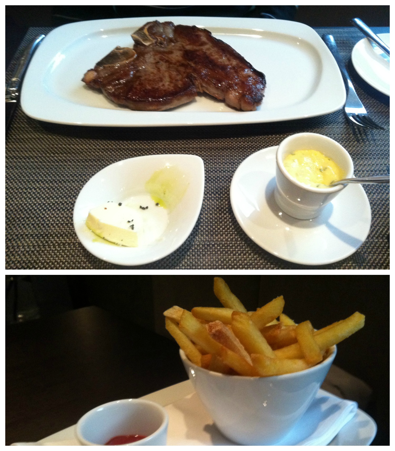 Co přistálo na talíři? Tak třeba steak za talíř. Přesněji popsáno v menu: T-BONE STEAK – kost tvarovaná do T s roštěncem a svíčkovou – „dva steaky v jednom”, plná chuť roštěnce a křehkost svíčkové obohacená grilováním na kosti 500 G / 18 OZ – 990 Kč. K tomu ručně krájené hranolky s maldonskou solí – 85 Kč. Omáčka Béarnaise – 50 Kč. Honosí se tu tím, že jsou „první restaurací v České republice, která vlastní gril Montague Legend, který sežehne steak při 650 stupních Celsia, čímž uchová všechny přírodní šťávy uvnitř steaku a vytvoří tak lákavou a jemnou máslovou konzistenci. Pečlivě vybírají jednotlivé kusy ve standardu Black Angus USDA Prime Beef. Nabízí hovězí maso pouze z několika málo vybraných farem amerického středozápadu, kde chov probíhá naprosto přirozeně.” Jako pohádka pěkná. A skutečný příběh? Hlavní protagonista (samotné maso) super, ale jinak nominace na Zlatou malinu.