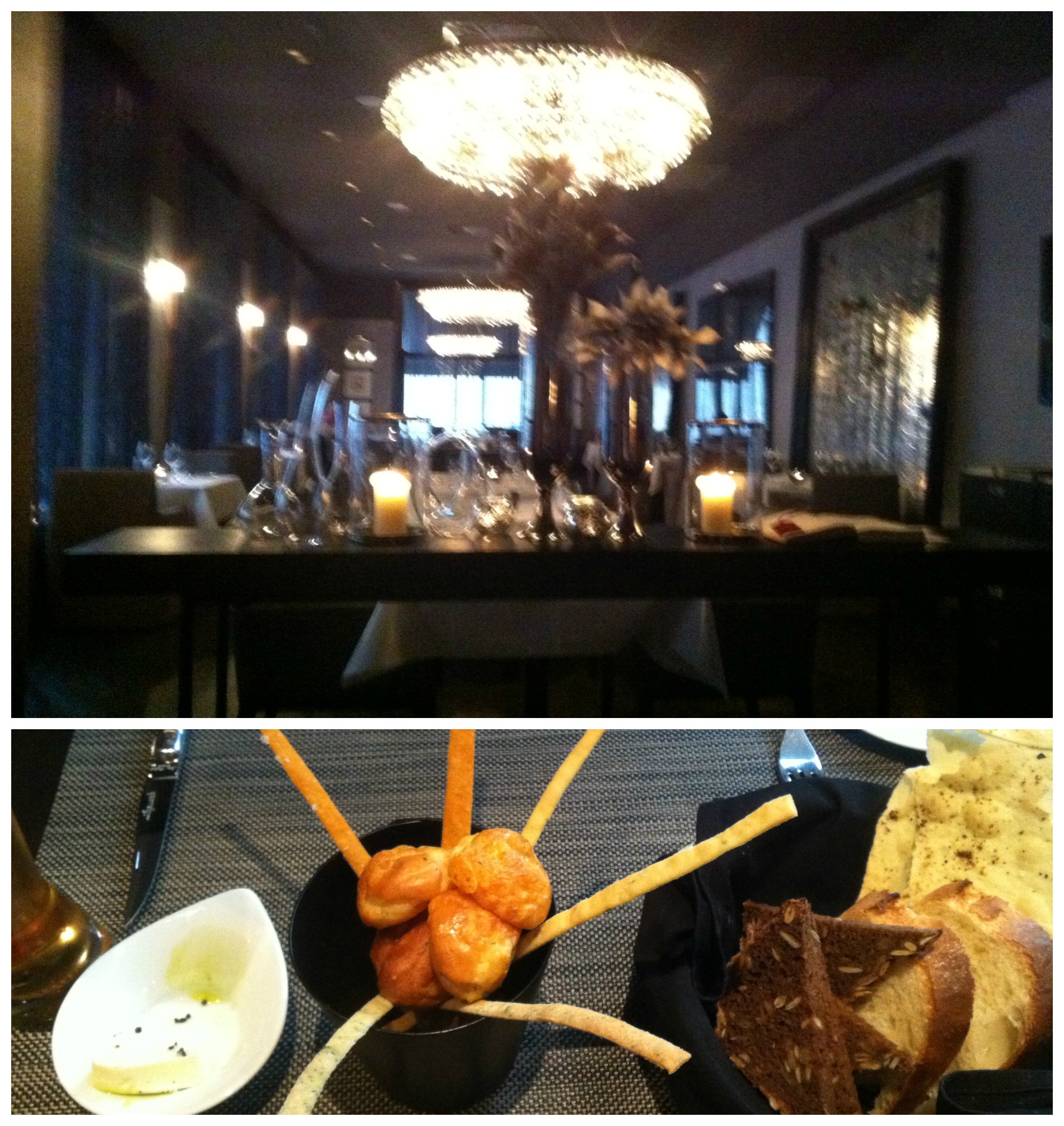 Odradit jsem se tím ale nenechala. Přišla jsem to sem vyzkoušet a natočit. Jak to v restaurační části vypadá, se musím podívat zas na jejich webu, protože jsem tudy jen prošla na toaletu a cesta byla obehnána stejným počtem zevlujících servírek, kolik bylo v Georgeovi hostů. Ještě než se dostanu k jídlu – velkou tragédií je tu obsluha. Manažerka restaurace vás ani nepozdraví, spíš dělá, že vás nevidí. Od číšníka nějaké chování, způsoby, a nebo dokonce zručnost při servírování nemůžete čekat ani omylem. Já ty škrobené límečky opravdu nemusím, ale krom toho, že si nandal bílou rukavici, když mi dával příbor, jsem u něho nezaznamenala nic, co by se do restaurace dané cenové kategorie trochu hodilo a slušelo. Asi už jsem s tím otravná, ale s tímhle vystupováním by ho v Ambiente chytli za flígr během jediné směny a letěl by jak letadýlko Káně. Prostě jste tu víceméně na obtíž. S uvítáním co do jídla to přitom nevypadalo beznadějně – variace pečiva s máslem, normálka, ale bavila mě ta domácí sýrová minisuflata a taky tyčinky… a pak…
