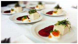 Na ukázku si tu pro nás připravili „Carpaccio z červené řepy podávané s mousse z