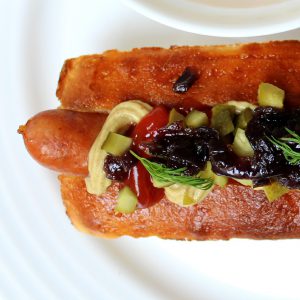 Párek si kupte, jaký se vám zlíbí. Ohřát ho ve vodě nebo v páře jistě zvládnete hravě. Ale klidně můžu Hot Koko Dog doporučit i na letní grilovačku – briošku opečete na grilu, párky klidně také, nebo je tam jen nahřejete… a v mističkách servírujte všechno možné, ať si každý najde svou kombinaci. Od okurek přes klasickou cibulku po tu karamelizovanou, ale klidně i sýr, nějaké to rajče, salát, nakládané chilli papričky, kapary… Plus hořčice, kečup, majonéza a další zvlhčovadla.