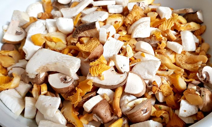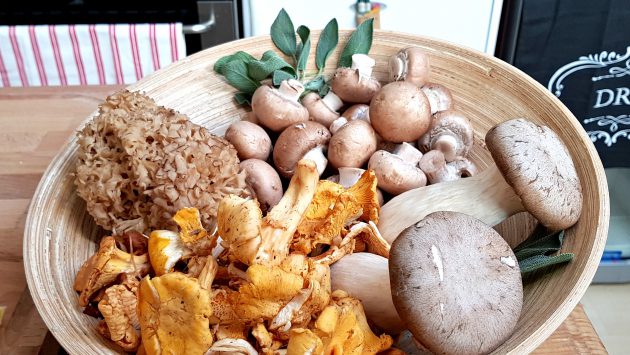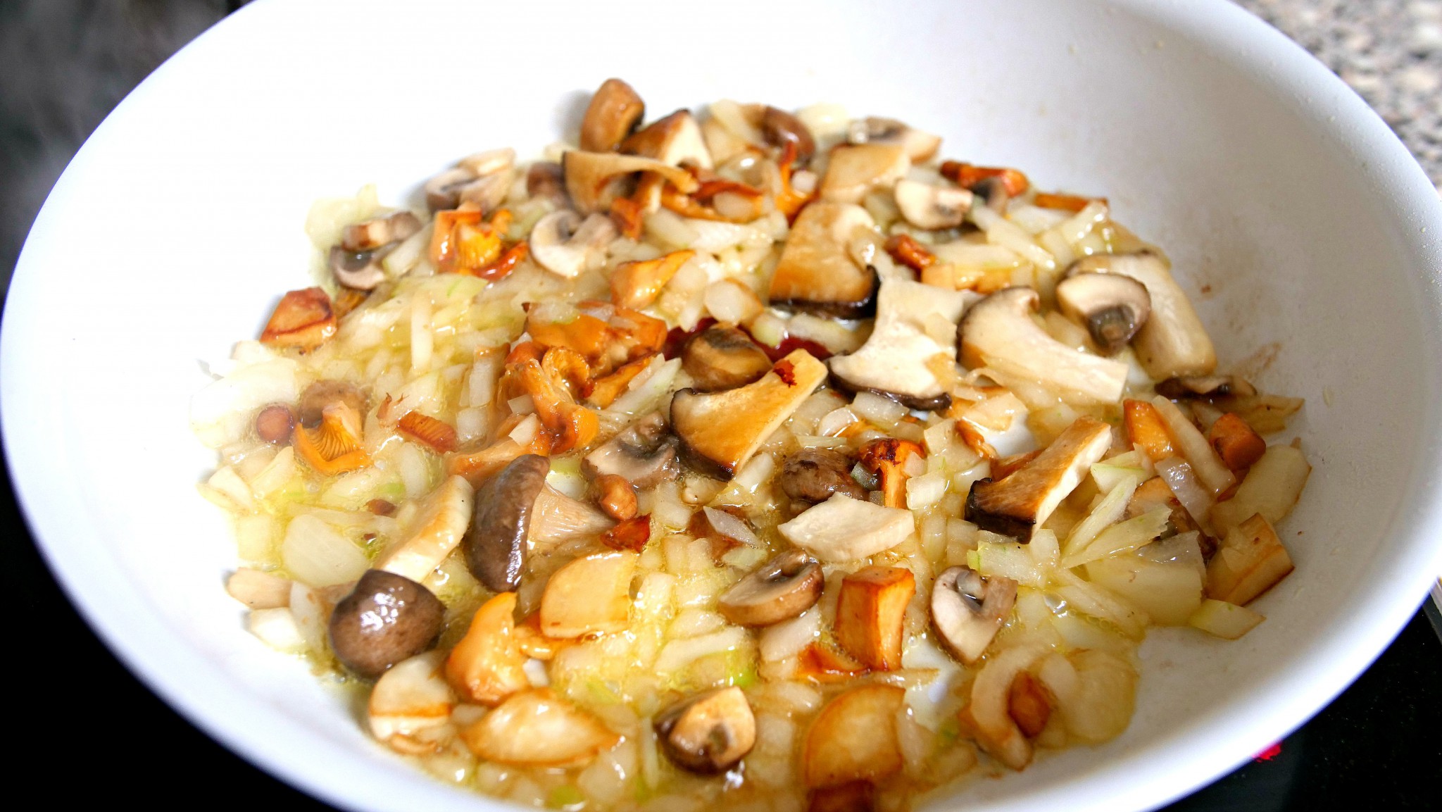 Letos jsem sice zaznamenala několikero chlubivých fotek houbových úlovků svých přátel na sociálních sítích, ale já dopadla přibližně takto :) … Na žně už to asi příliš nevypadá, ale člověk si musí umět poradit. Pokud máte chuť recept vyzkoušet, můžete samozřejmě použít i sušené nebo mražené houby. Ty sušené zalijte minimem horké vody a nechte je nasát vlhkost minimálně půl hodiny. Pak je vymačkejte, pokrájejte na co nejmenší kousky, aby z nich nebyla v pokrmu žvýkačka, a zbylou voňavou hnědou tekutinu rozhodně nevylévejte. Naopak sušené houby nastavte čerstvými kupovanými, ať už žampiony nebo hlívou ústřičnou, a a až je budete restovat na pánvi, přidejte v posledních pár minutách, než přihodíte uvařené fleky do pánvi, tenhle houbový extrakt. Kupované houby najednou pojmou lesní chuť a kouzlo je na světě. Jestliže vás mrazák skýtá zásoby zmražených hříbků, samozřejmě je směle můžete využít také. Jen už jste jistě zaznamenali skutečnost, že se nikdy neopečou dozlatova, protože hned začnou pouštět vodu. Proto nemá smysl je na pánvi moc dlouho mučit.