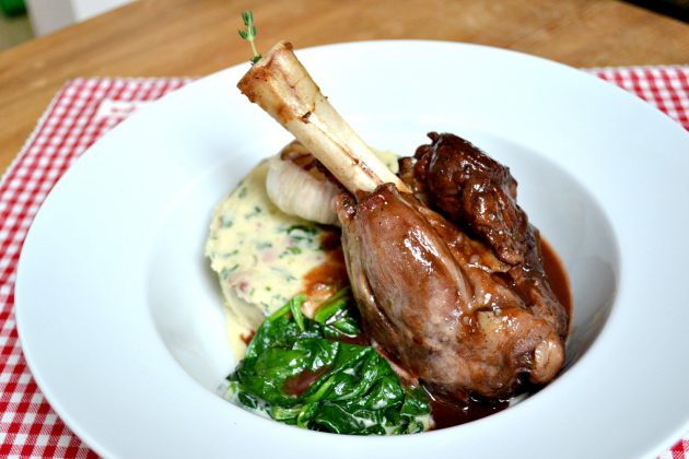 Už jsem několikrát slyšela, že „jehněčí divně smrdí“, přitom je pravda jinde – ono totiž pěkně charakteristicky voní. Stejně tak jako u jiných mas je tu nejdůležitější kvalita. Nositelem chuti je klasicky tuk – takže čím více ho na mase necháte spolu s blankami, tím charakterističtěji vonět bude. Odblanit je nutné i jehněčí kolínko, nicméně, pokud byste sundali úplně všechno, kolínko by se vám rozpadlo na několik kousků ještě před dušením, natož po něm, takže ano, ať už tmavě červená barva prosvítá, ale trocha pojiva kolem zůstat musí.