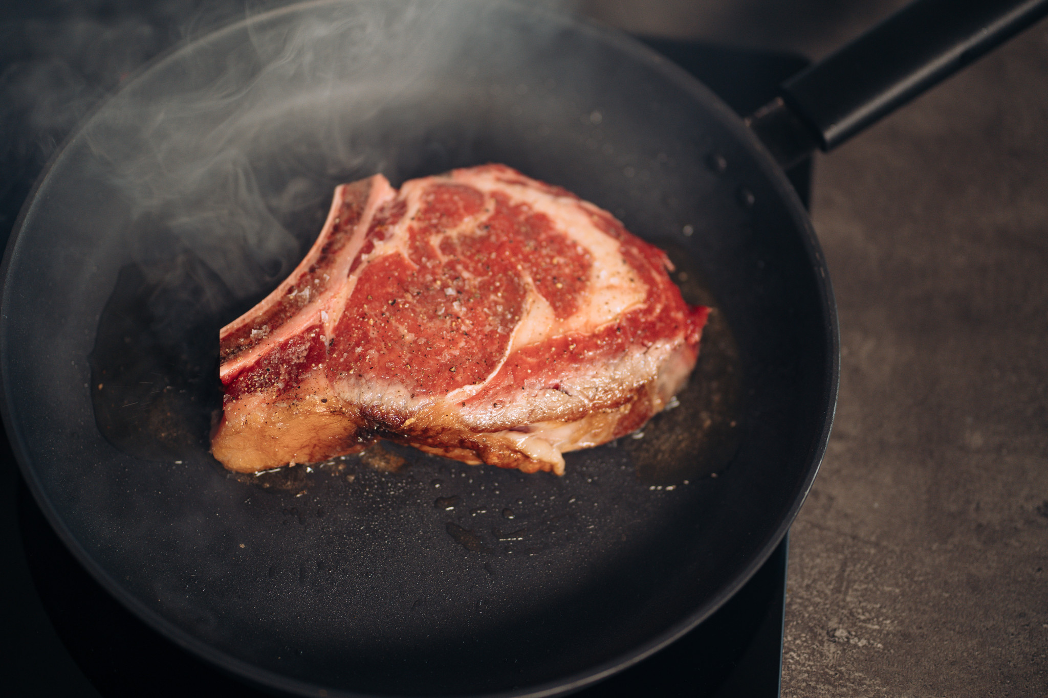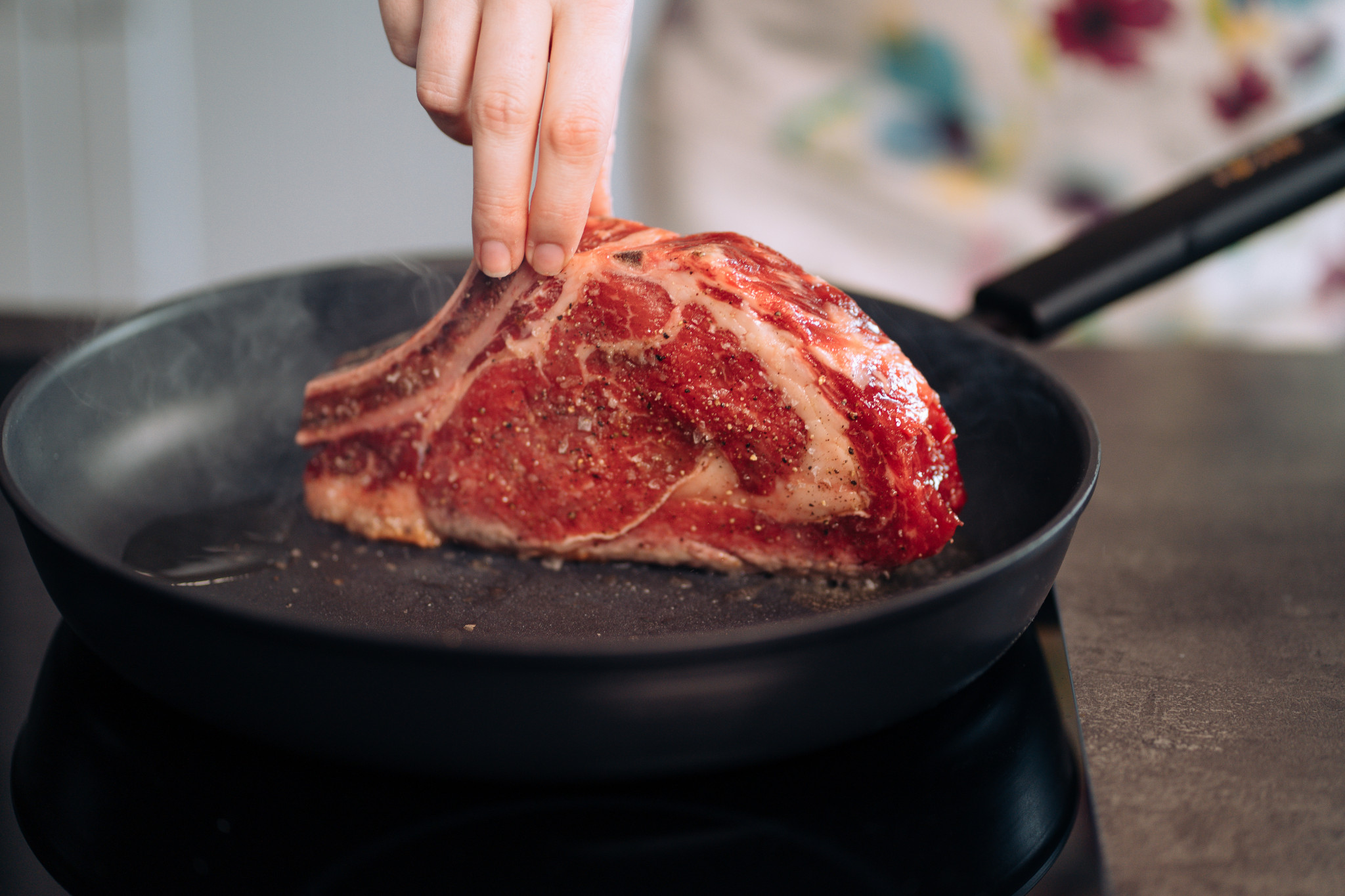 - Mezi tím nijak s masem nehýbejte po pánvi, nechte ho jenom kouřit a jděte třeba rovnou větrat.