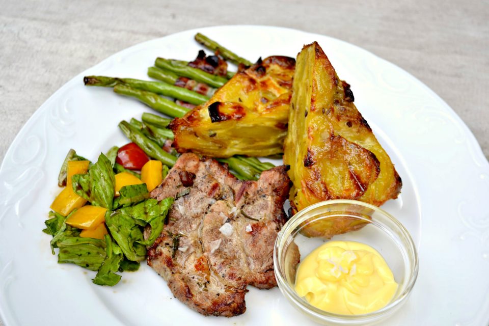 Možná, že se děsíte výčtu všech ingrediencí, ale není nutno vlastně všechny komponenty při vaření využít. Někdo si může dát jen krkovici s tortillou, jiný jen se salátem a další jen s fazolkami a aioli. Aioli je francouzská česneková majonéza. Do pětiminutového videa se nám nevešla, nicméně buď můžete postupovat tak, že doma vytvoříte normální majonézu a do ní vmícháte prolisovaný česnek. Postup je v základech vaření a nebo jsem pro vás objevila pěkné video na youtube, i když je v angličtině, všechno se dá bezvadně odpozorovat jen z obrazu a za 5 minut má ten pán taky hotovo.
