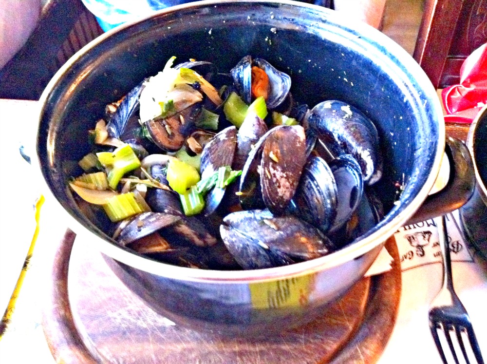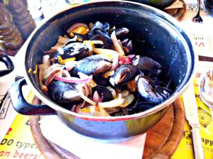 Pak samozřejmě nesměly chybět mušle, konkrétně slávky původem z Dánska. Minimální porce na jednu osobu je rovné jedno kilo, s menším množstvím se tady vůbec nepočítá a způsobů úpravy je množství také nepřeberné – konkrétně 13: Mušle Marinier, Mušle na thajský způsob, Mušle na bílém víně, Mušle po Baskicku s Chorizem, Mušle na pastisu s fenyklem, Mušle na vavřínu s koňakem, Mušle natur na řapíkatém celeru, Mušle na česneku, Mušle s čerstvým zeleným pepřem (smetana), Mušle s estragonem z Provance (smetana), Mušle se zázvorem a čili, Mušle na tmavém belgickém pivu a Mušle la Provance. Na doporučení jsem zvolila Marinier a po provensálsku. Obsluha Vám vždy skvěle poradí vybrat pro Vás nejlepší možnost. Většina slávek se servíruje pobelgicku s hranolkami a majonézou. Můžete je ale vyměnit za rozpečenou bagetku a navíc ty zavánějící Asií tu mají také s jasmínovou rýží. Byly perfektně přebrané. Marinier s extra přídavkem chilli pro mě byly prostě nadpozemské. Když Vám je donesou na stůl, ovane Vás oblak voňavé páry a nemůžete to všechno nesníst. Kilogramová porce tu stojí 299 Kč a nebo si můžete dát all you can eat za 595 Kč.