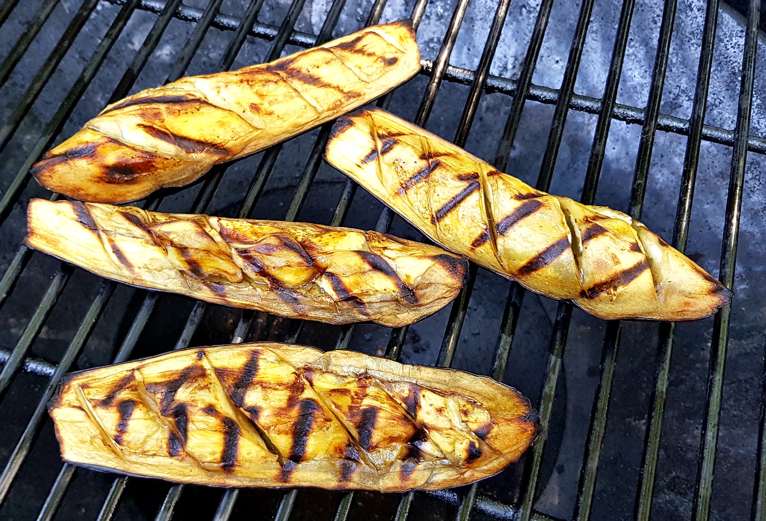 Lilek musíte začít grilovat jako první, doporučuji střední sílu uhlíků či plynu, aby se slupka jen nespálila a uvnitř nezůstal ještě zelený a křupavý (v tu chvíli není hotový, musí být opravdu měkký!). Na mřížce bude potřebovat tak 15 minut určitě. Možná i víc.