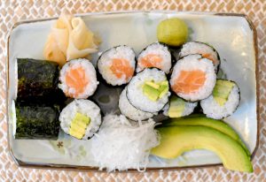 Mám pocit, že se sushi je to jako s ústřicemi. Počáteční obava je vystřídána buď absolutním nezájmem znovu ochutnat a nebo láskou na celý život. Můj případ je definitivně ten druhý, vlastně u obojího ze zmíněných pochoutek. Dneska tedy o sushi. Krátkou historii a teorii se dočtete na netu všude. Jedno z nejznámějších japonských jídel, doslova přeloženo „kyselá rýže“, první zmínka o suši pochází už z roku 718 n. l. Původně se nasolené části syrových ryb obalovaly do rýže, aby v ní dozrály, rýže se nekonzumovala. V průběhu času se recepty různě upravovaly a přizpůsobovaly a každá část Japonska si vytvořila své vlastní místní suši speciality. Například jedna z nejpopulárnějších suši specialit současnosti nigiri sushi vznikla až v 19. století v Tokiu. Největší boom suši ve světě zaznamenalo až v minulém století a tento boom přetrvává dodnes.