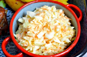 Salát coleslaw je takovým vitaminovým osvěžením proti nakládanému kyselému zelí podávanému v restauraci. Navíc je natolik šťavnatý, že není třeba další hořčice nebo barbecue omáčky. Ale do dochucovadel vám mluvit nebudu. Každý máme jiné chutě. Klidně si tam k tomu nahustěte kečup. Stačí jen mrkev, zelí i cibulku nastrouhat, v míse smíchat se solí, pepřem, octem a pak vždy po lžíci přidávat majonézy i smetany, zamíchat, ochutnat a opakovat, dokud to není ono, tedy jako v KFC :)