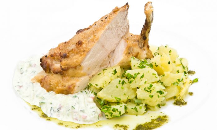 Okurkový salátek s jogurtem – nastrouhanou okurku osolíme a opepříme, smícháme s bílým jogurtem, třeným česnekem a sušenou mátou. Uvařené brambory smícháme