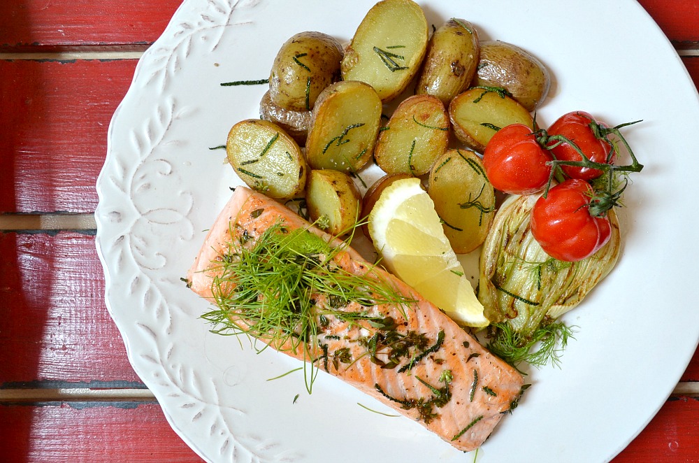 A ještě jedno malé PS., které jsem ukazovala také ve videu – fenykl se hodí i k lososovi na grilu či na pánvi. Rybu jen omyjte, z kůže odstraňte šupiny, osušte, opečte na všech stranách na oleji, na poslední minutu přidejte kousek másla a lososa protočte, aby bylo všude po jeho povrchu. Spolu s ním můžete na pánev dát plátek fenyklu a nějaká cherry rajčátka, vedle už opékat také uvařené nové brambůrky se slupkou a přihodit k nim rozmarýn, tymián nebo další oblíbenou bylinu. Osolit, opepřit a je to.