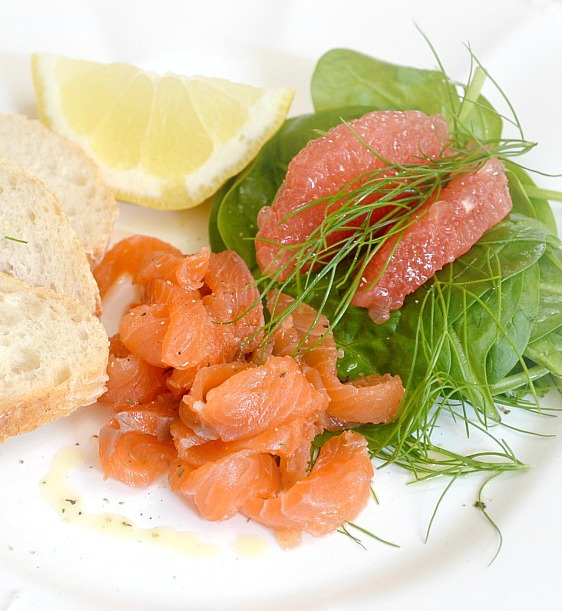 K marinování domácímu lososa mě inspirovala plzeňská restaurace Saloon Roudná, z jejíž návštěva mne sice nepotěšila, ale alespoň jsem se pustila do průzkumů, jak na Gravlaxe – skandinávskou specialitu, na kterou si musíte po přípravě sice chvíli počkat, ale vyplatí se to. Můžete tak připravit celý filet, ale ten může mít i několik kilo, a přestože díky puštěné vodě maso nějakou váhu během marinování ztratí, pořád potřebujete tolik členů rodiny jako Veronika Žilková, abyste pak všechno zpracovali. Budete-li si vybírat tedy jen půlkilový kus, záleží, co máte raději. Zda ocasní část, kde je znatelně méně tuku, tedy těch bílých čárek,a proto se doporučuje i na sushi a současně je tu nutno být opatrní se solí, protože nízká část lososa se promarinuje snáz a také za kratší dobu, ocásku stačí 24 hodin. Takže ten je pro nedočkavé. Plátky jsou z něho ale nevysoké, asi tak 1 cm. Kdo rád autentickou chuť lososa a chce se do něj taky pořádně zakousnout, volí vysoký úsek filetu a počká si dva dny. Marinuje se s kůží, která filet drží při sobě, ale před krájením se odstraní. V polovině doby marinování bychom lososa měli otočit kůží nahoru a zas vrátit do lednice.