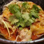 Nejdůležitější roli tu ale hrají určitě horké wonton knedlíčky plněné vepřovým masem a omáčka s domácím chilli olejem. Wonton je to těsto, ve kterém je vše vařené. Představte si to jako velmi jemné ravioli s pálivou omáčkou a koriandrem. Moc chutnalo! Líbí se mi i dobrodružnost a komplexnost pokrmu.