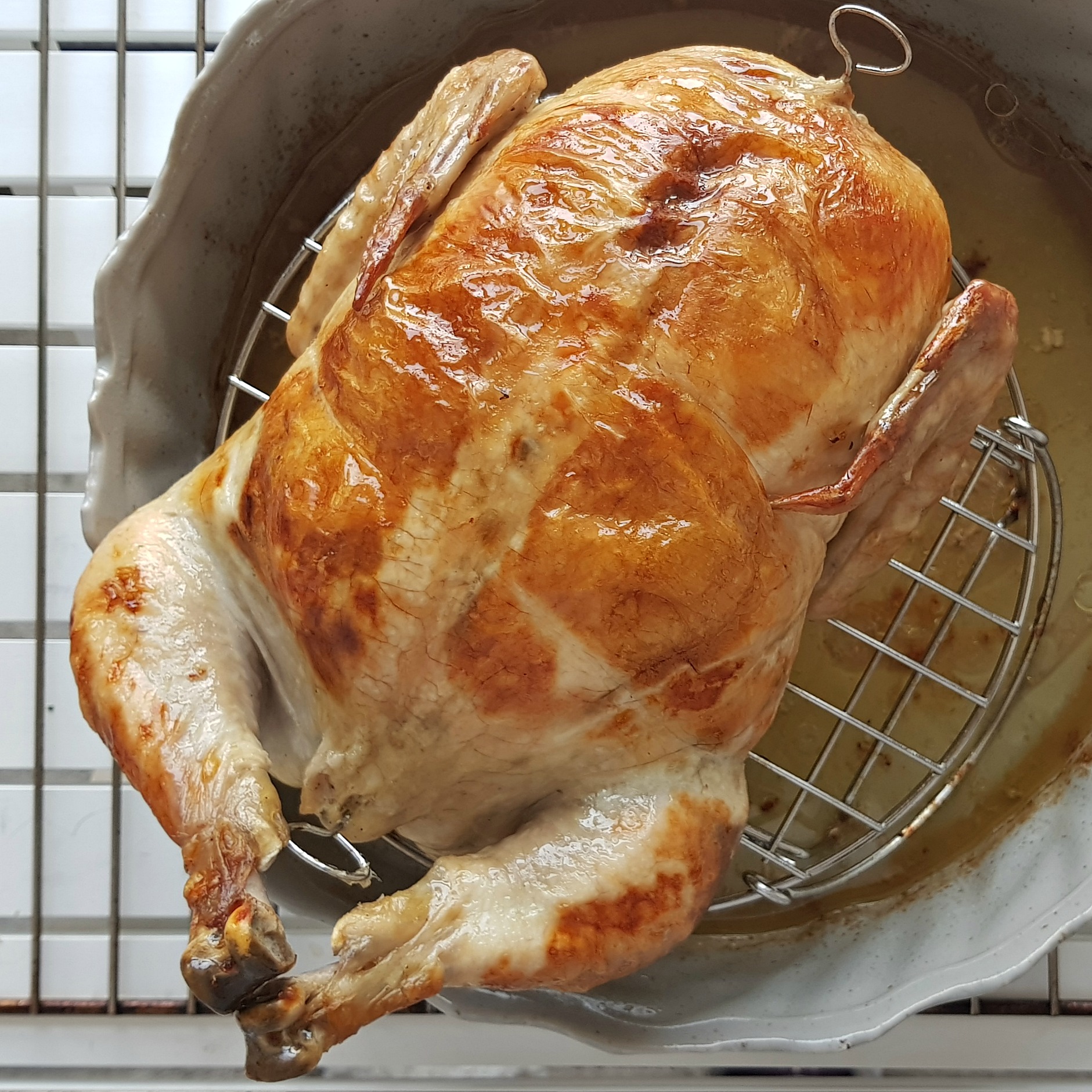 Pokud máte možnost, doporučuju kuře nebo roládu upéct den předem. V takovém případě nechte celý kus zchladnout vcelku. Až budete chystat oběd druhý den, poprvé do něj zakrojte. Průřez bude dokonalý. Čistá práce. Plátky pak můžete pomalu ohřát v troubě na 70 °C a nebo opéct na pánvi na sádle nebo přepuštěném másle. A na dalších plotnách připravovat přílohy a ohřívat sos. Ten servírujte v omáčníku vedle.