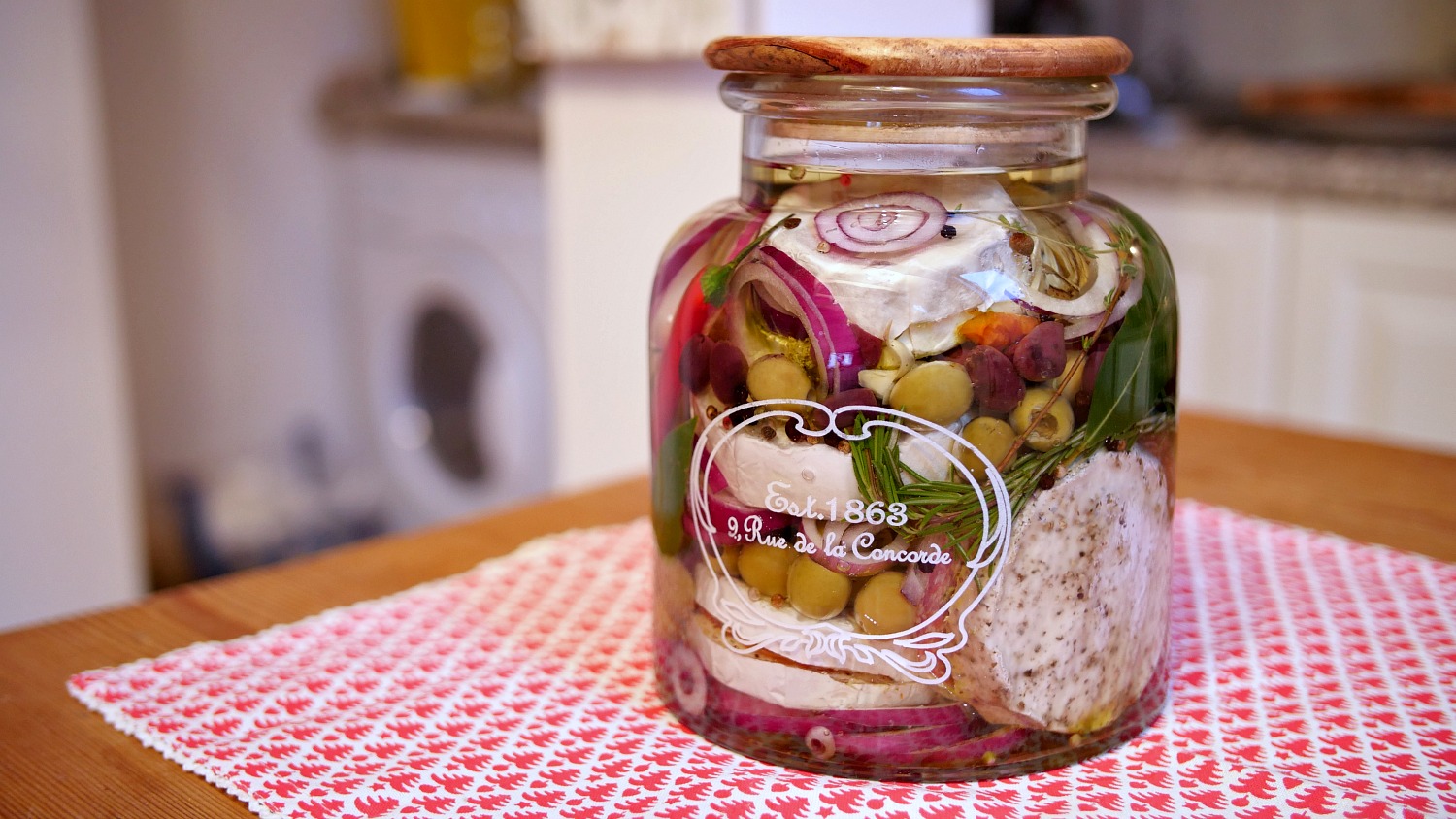 Nikdy nedávejte celý hermelín jen tak do oleje s jednou chilli papričkou a snítkou bylinky. To je prostě málo. Pravidlem číslo jedna je hermelín horizontálně rozpůlit a v průřezu ochutit. Pak znovu splácnout dohromady, takže bude vypadat trochu jako hamburger. Není na škodu ho uvnitř i trochu osolit a opepřit. K tomu plňte ale čímkoli, co máte rádi. Můžete pomazat lžičkou pesta, chilli pasty, sambalu, tapenády a podobně. Vše může být buď doma vyrobené a nebo prostě kupované. Rozhodně vždycky používejte kolečka cibule (červená a bílá – popřípadě šalotka – jsou jemnější a vhodnější). Cibule není nikdy dost. Čerstvé bylinky jsou skvělé nejen na chuť, ale i na efekt. Pokud máte sušené, ideálně ho roztloukněte v hmoždíři. jestliže chcete používat i semínka nebo ořechy, nejprve je opražte na pánvi a nechte vychladnout. Každou vrstvu vždycky zas trochu osolte a opepřete, když budete vkládat do sklenice, olej bere dost chuti. Na druhou stranu olej můžete dál používat, protože ho všechno skvěle ochutí. Můžete z něho např. pak udělat majonézu, dresink na salát a podobně. Jestliže chcete používat cokoli v oleji – např. nakládaná sušená rajčata, vlijte do sklenice i olej, který z nich zbyl a až následně dožeňte slunečnicovým olejem.