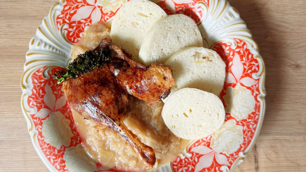 Péct můžete ale i venku v grilu – zkoušela jsem to způsobem nepřímého grilování (indirect) v keramickém kamado grilu Monolith Classic, což znamená že přímý žár z uhlí rozptýlíte pomocí deflektorů a nad ně umístíte misku na odkapávání tuku. Deflektor je keramická deska, kterou vložíte do konstrukce grilu těsně nad rozpálené uhlíky a díky tomu se z grilu stane supertrouba. Jedině v tomto případě se mi povedlo kachnu upéct tak, že byla kůže rovnoměrně hnědozlatá stejně na prsou, jako na stehnech i na hřbetu. Pekla jsem spíše v pekingském stylu, takže zprudka na 180 °C, stačila hodina.A samozřejmě vždy je potřeba nechat drůbež odpočinout, než ji začnete porcovat. Minimálně 20 minut ji nechte ležet v pokojové teplotě, prostě jen tak. Nebojte, rozhodně nevychladne. Šťávy se vrátí na své místo, aktuální příliš vysoká vnitřní teplota klesne na vhodnou ke konzumaci. A vy máte čas ladit sos nebo napařit připravené knedlíky a ohřát zelí.