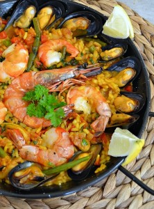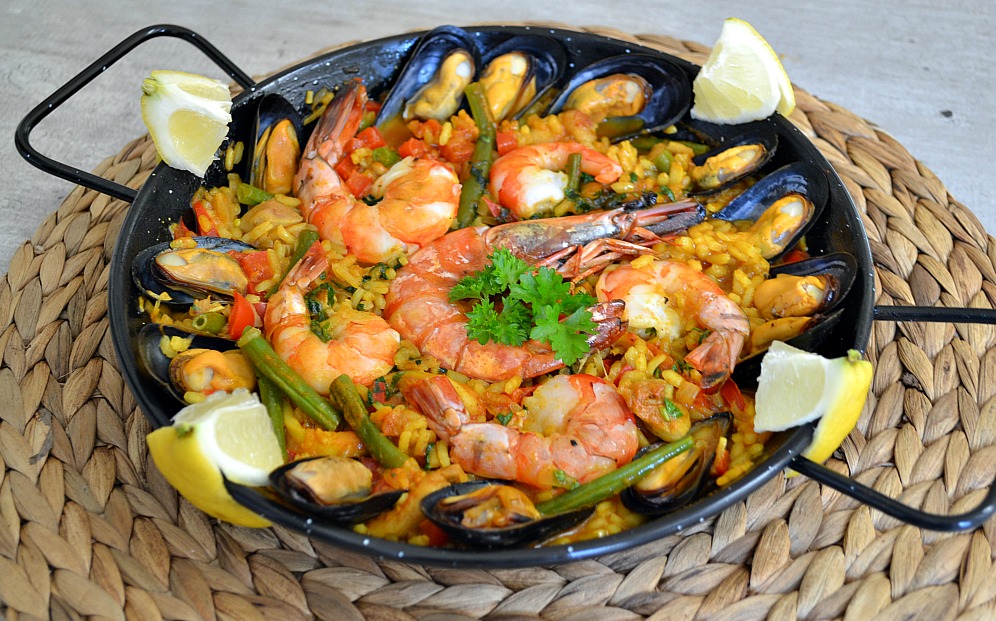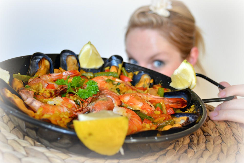 Doma mám kulinárního průvodce Španělskem a několik informací na začátek si z něho dovolím citovat, abyste měli představu, kam až paellí tradice sahá. Ve Španělsku se používá spojení „andar de paella“, které znamená „jít se najíst paelly”, já se jí většinou spíš přežeru :) Ve Valencii to znamená společenskou událost. Paella patří k oslavám jmenin a narozenin, pojídá se o výročích svatých patronů i o nedělních výletech. Valencijské národní jídlo se zrodilo na venkově. Původně si tak připravovali sedláci rýži v pánvi na ohni rozdělaném přímo na poli a přidávali do ní hlemýždě a zeleninu. O svátečních dnech obohacovalo pokrm králičí maso a později kuře. Kromě původní paelly je ve Valencii oblíbená paella marinera s rybou a mořskými plody, stejně jako paella mixta s rybami, mořskými plody a masem. Připravuje se také s játry, jelitem nebo s artyčoky a dalšími přísadami.