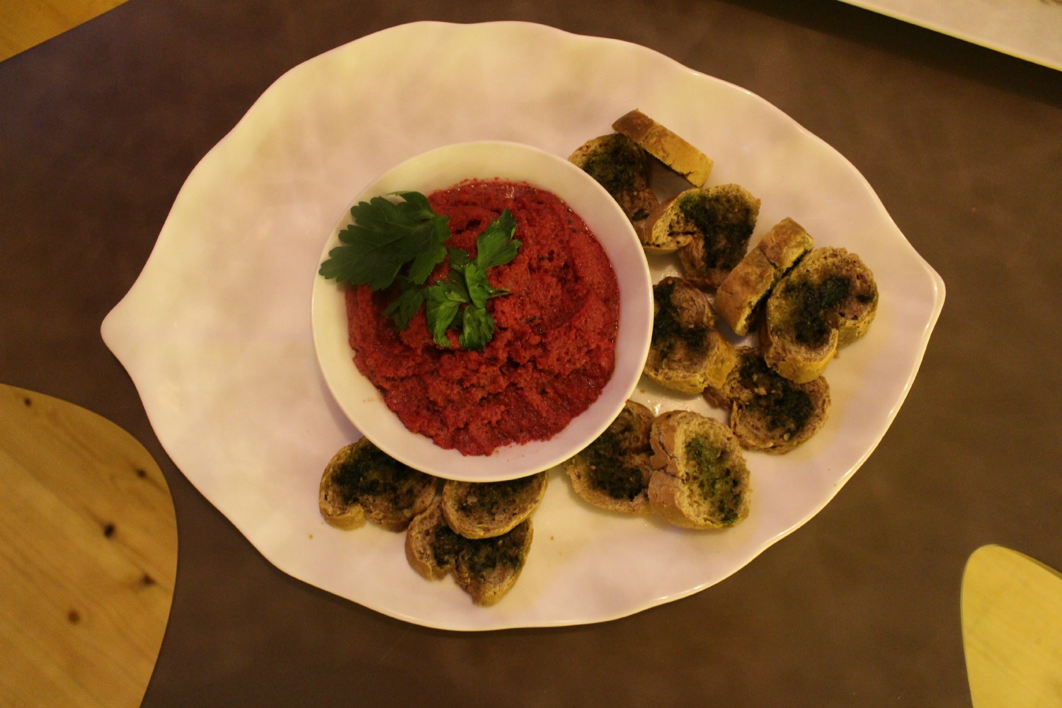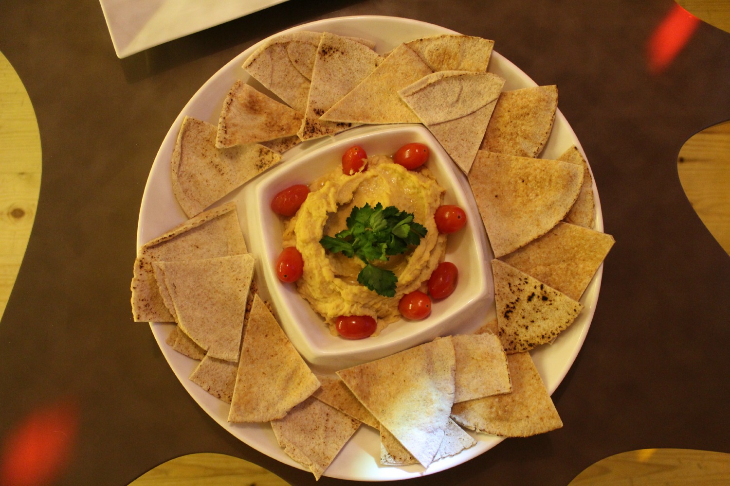 - marocký hummus s arabským chlebem a sezamovým olejem