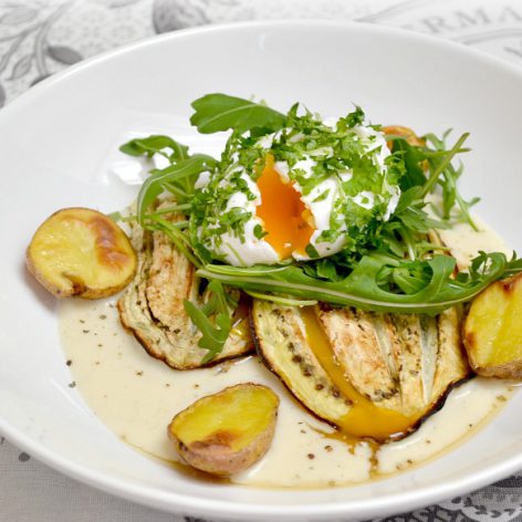 Během toho můžete pracovat na vejcích a omáčce. Jak na pošírovaná (ztracená) vajíčka jsme už řešili v souvislosti s kulajdou. Vodu na ně osolte. A co se týče křenové omáčky, je možno použít i křeník ve skleničce místo čerstvého. V tom případě není ani nutno přecedit na konci. Dejte v tu chvíli ale pozor, abyste neměli v omáčce moučné hrudky – tomu předejdete, když necháte jíšku vychladlou a zalijete ji pak vroucím vývarem, rozmícháte a přidáte smetanu. V případě cezení a čerstvého křenu vás to trápit nemusí. Křen je na jaře mnohem slabší než na podzim, takže jeho množství je variabilní a musíte koštovat.
