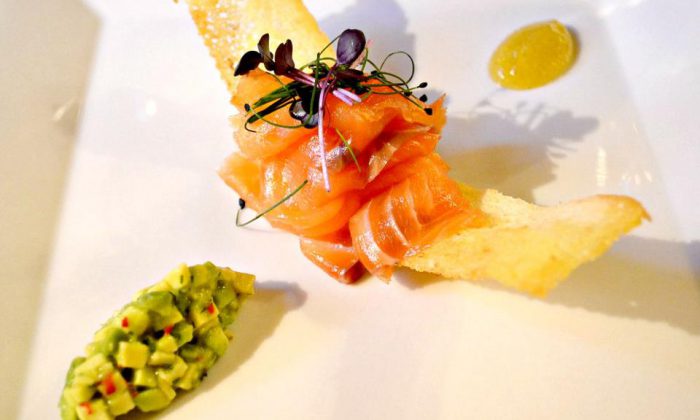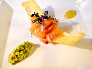 Na malostranské straně Karlova mostu se vskutku hned u jeho věže nachází restaurace s příjemným interiérem i obsluhou, kam jdu vždycky ráda. Šéfkuchař se zaučoval v Bellevue a vliv Zátiší Group je tu znát hlavně ve schopnosti vše skvěle ochutit a dotáhnout. Následující menu pro dva, pro každého tři chody, jsem testovala pro Slevomat, vyšlo celkem na 650 Kč. Takže co ochutnáme? Gravklaks z čerstvého lososa podávaný s avokádovým chutney, máslovým chipsem a fíkovou hořčicí – pod nevšedním názvem se skrývají tenoučké plátky lososa jemně marinované v citrusové šťávě a co se týče dochucení, přijde si na své jak ten, kdo upřednostní ostrost i sladkost fíkové hořčice, tak i konzervativnější konzument, preferující jemnou chuť avokáda.