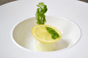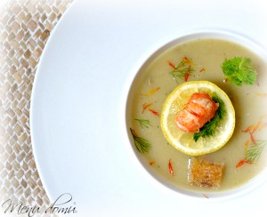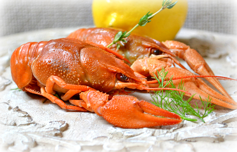 V talíři zdobíme se zelenými konci fenyklu, šafránem a plátkem citronu. Pokud na pánvičce zbyde trochu másla obarveného načerveno ocásky, pár kapek také přidáme, případně extra virgin olivového oleje.
