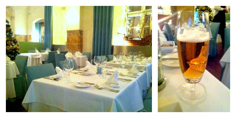 Jenže já už měla vybráno dávno před tím, než jsem sáhla na kliku od dveří. Do restaurací nechodím na blind, ale předem dokonale seznámená s jídelníčkem přes web. Před tím to ale chtělo něco k pití a tady nastal první velký zádrhel. Tedy, zádrhel a pěna, obojí bylo velké. Ale jinak pivo bylo malé. Velmi malé. Vlastně nejmenší, jaké mi kdy kdo kde načepíroval. Vím, že se restaurace nachází u Staromáku, ale tohle je i na pražskou míru těžký kalibr. A když pěna (a to se stalo bohužel véélmi rychle) opadla, zbylo to, co vidíte na fotce. Neupila jsem ani lok :/
