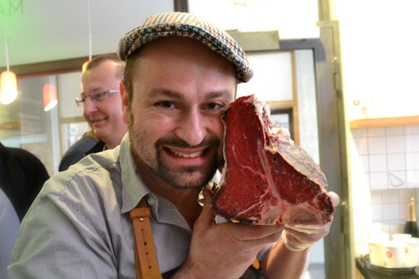 Nedávno jsem poprvé navštívila pražskou restauraci ČESTR, mimochodem, svůj gastrozážitek popisuju tady, jedná se o podnik zaměřený na za sucha vyzrálé, jinak řečeno stařené, maso, kde se coby host stáváte přímo přes sklo svědkem porcování těch obřích mas na velikost, kterou vám nakonec přinesou na talíř (tedy i na 125g steaky). Stejně tak můžete šmírovat práci řezníků v nové prodejně Naše Maso. Jedná se totiž o jednu partu. ČESTR patří pod skupinu Ambiente, stejně tak jako například Brasileiro, Pasta Fresca, Lokál, La Degustation, Café Savoy nebo Pizza Nuova. A protože si šéfkuchaři z těchto restaurací oblíbili česká masná plemena, Ambiente se rozhodlo toto maso nejen shánět jim do kuchyně, ale postupně i nám zákazníkům vařícím doma. Začalo to samotným e-shopem. A tento týden to následuje otevřením kamenné prodejny v Dlouhé ulici č.p. 39 v Praze, která bude nyní využívat i možnosti zmíněného internetového obchodu. Prodejna bude fungovat v čele s Františkem Kšánou. O řeznictví Kšána a syn už jste možná slyšeli – jak v případě zmínek v pořadu S Italem v kuchyni, tak i v televizi nebo v gastronomických časopisech. A ten „syn“ v názvu, to je on. Trhnul se od taťky a nyní bude působit tady.