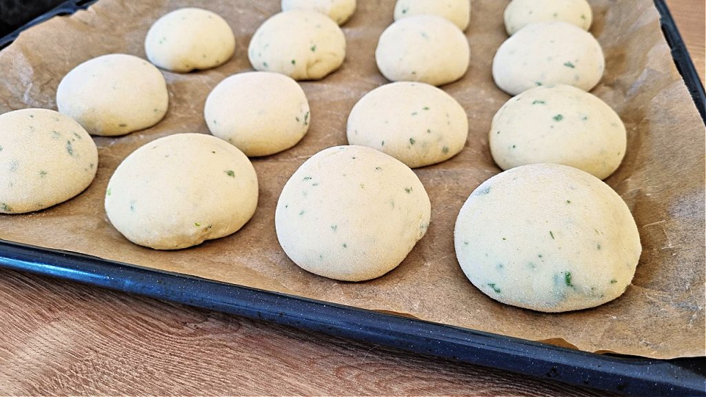 Po vykynutí těsta si vytvarujeme knedlíky. Z těsta pomocí lžíce odkrojte vždy přibližně padesátigramové bobánky, mělo by jich vzniknout 8. Kuličky lehce obalíme v polohrubé mouce, dotvarujeme pomocí prstů a necháme je ještě 15 minut dokynout na kuchyňské lince. Knedlíky vaříme v páře přibližně 10–11 minut- parní vaření zajistí nadýchanost a jemnost knedlíků, nemají šanci se rozvařit ani natáhnout příliš vlhkosti. Pak je nechte vychladnout tak, abyste je mohli obalit ve vejci a osmažit. Pokud je připravujete předem, vydrží v pytlíku nebo vzduchotěsné nádobě v lednici i několik dní. Během toho hodně ztuhnou, takže je před obalením doporučuju zas malinko napařit. Ostatně, musím prozradit, že má rodina si vystačí s knedlem z páry i bez smažení ve vejci – je na vás, jak moc extra speciál má příloha být.