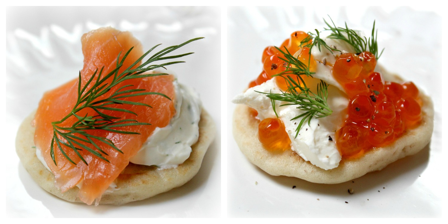 Ať už hodláte slavit, že rok 2015 končí, a nebo spíš skutečnost, že 2016 začíná, Silvestr se blíží mílovými kroky, a jestli nechcete skončit u vajíčkových chlebíčků nebo jednohubek z koleček rohlíku s lovečákem a kyselou okurkou (ne že by mi nechutnaly, ale prostě je to už poněkud postmoderní), je nutno začít jednat a připravit se. Přemýšlela jsem nad něčím malým a roztomilým, s jednotným základem, se spoustou variant zdobení, s možností servírování ve studeném i horkém stavu a hlavně neotřelým. A hle, budiž bliny. Jejich přípravě se věnuju i v pořadu Vaříme společně v čase 2:20 až 4:30, hned se můžete mrknout i na video.