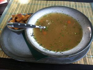 Můj zážitek byl způsoben dokonalou neschopností a ignorancí obsluhy. Jsou líní se tu i jen poohlédnout, zda host nepotřebuje pít nebo jíst, a to i v případě, že jsou v celém podniku zaplněny tři stoly. Jsou neschopní se domluvit mezi sebou i s kuchyní, kdy jeden z těch tří stolů něco dojedl a že už bude v budoucnu nutno přinést další chod. A co hůř, ani v kuchyni tu ještě nepochopili, že se hlavní chod nosí po dojedení polévky (zdůrazňuju, že jsem si neobjednala žádné obědové menu z hotovek). A nechat hosta následně chcípnout hlady a žízní, protože si dovolil na tuto situaci číšníka upozornit, se mi zdá do nebe volající, a právě proto sedím nad těmito řádky.