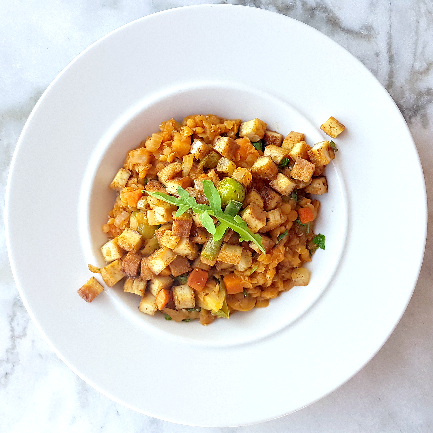 Červená čočka se zeleninou a tofu