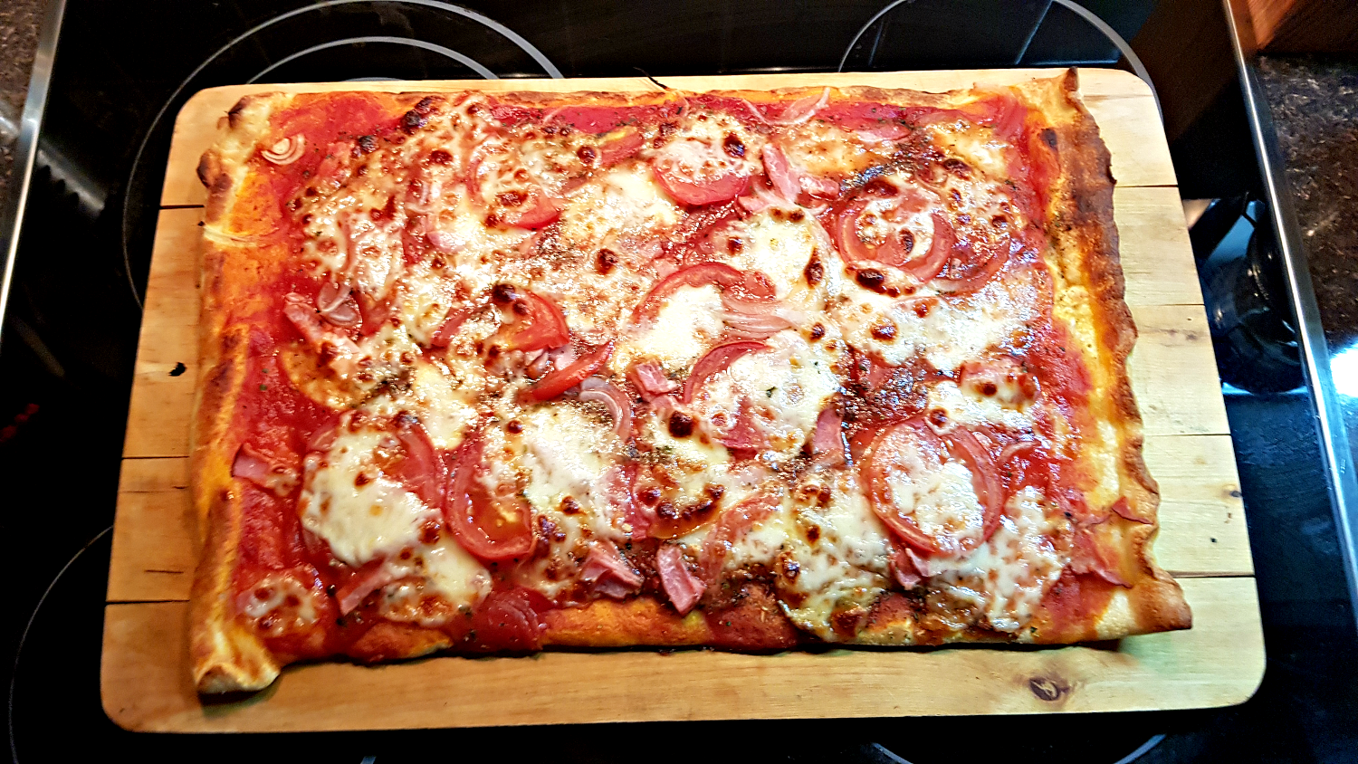 - a pak co najdete – čerstvá rajčata, kousek šunky, tenké plátky cibule, žampionů…